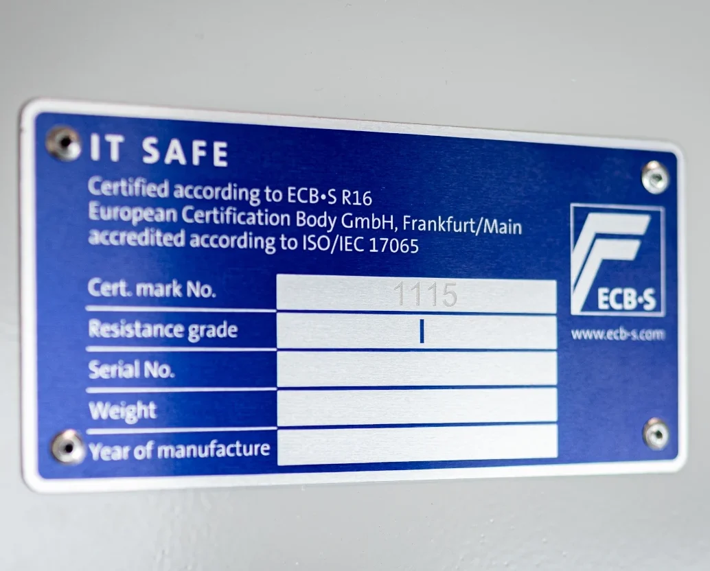 Kaso IT safes are certified according to ECB-S R16 Guidelines to Grade I against intrusion and manipulation.